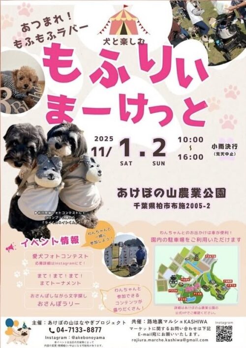 【千葉県柏市】2025年11月1日(土)、2日(日)わんちゃんと一緒に楽しめるイベント『もふりぃまーけっ...