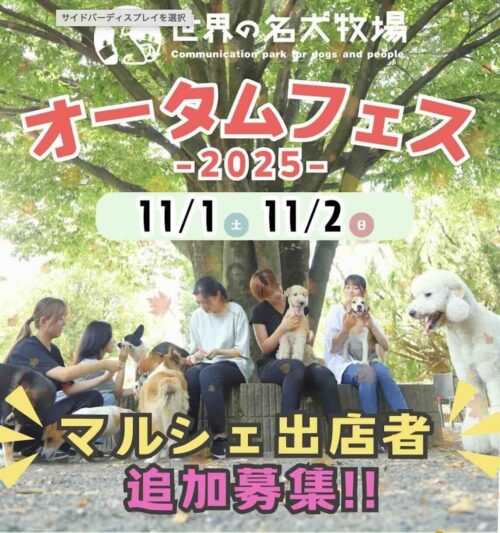 2025年11月1日(土)、2日(日)群馬県前橋市にある世界の名犬牧場にて『世界の名犬牧場オータムフェス2025』が開催されます。 この秋も、11/1(土)と11/2(日)の2日間、...