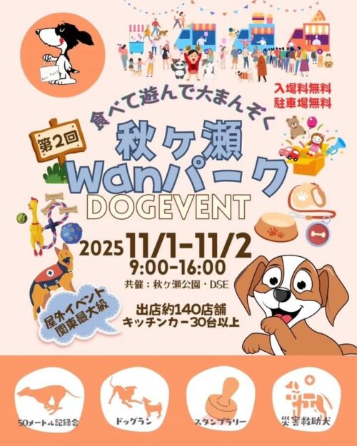 2025年11月1日(土)、2日(日)埼玉県さいたま市にある秋ヶ瀬公園にて『第2回秋ヶ瀬Wanパーク』が開催されます。 🎇秋ヶ瀬公園全面協力にて開催🎇 ...