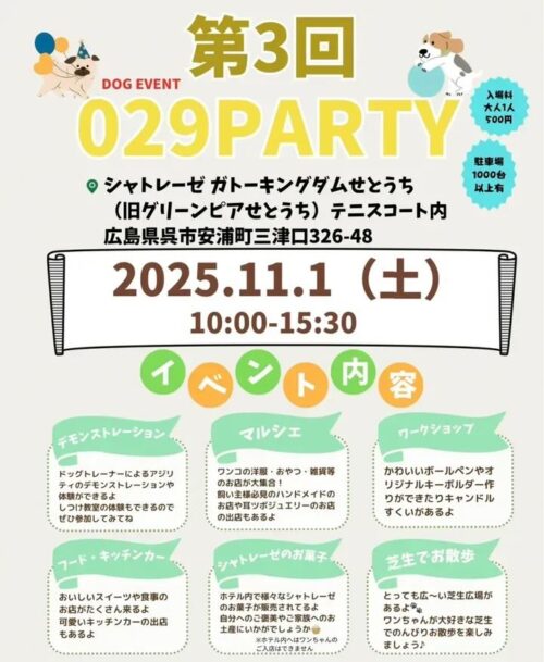 2025年11月1日(土)広島県呉市にあるシャトレーゼガトーキングダムせとうち(テニスコート内)にて『第3回029PARTY』が開催されます。 ‼️‼...