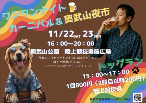 2025年11月22日(土)、23日(日)沖縄県那覇市にある奥武山公園 陸上競技場前広場にて犬と食•酒のイベント『ワンワンナイトカーニバル & 奥武山夜市』が開催されま...