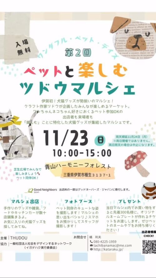 【三重県伊賀市】2025年11月23日(日)『第2回ペットと楽しむツドウマルシェ』が青山ハーモニーフォレス...