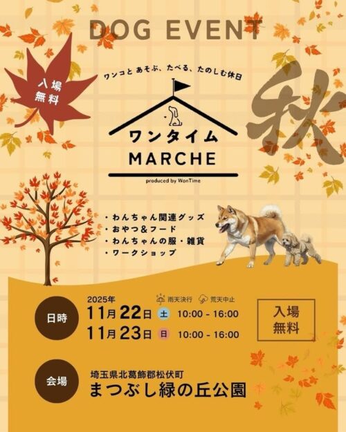 【埼玉県加須市】2025年11月1日(土)わんことあそぶ、食べる、たのしむ休日イベント『ワンタイムマルシ...