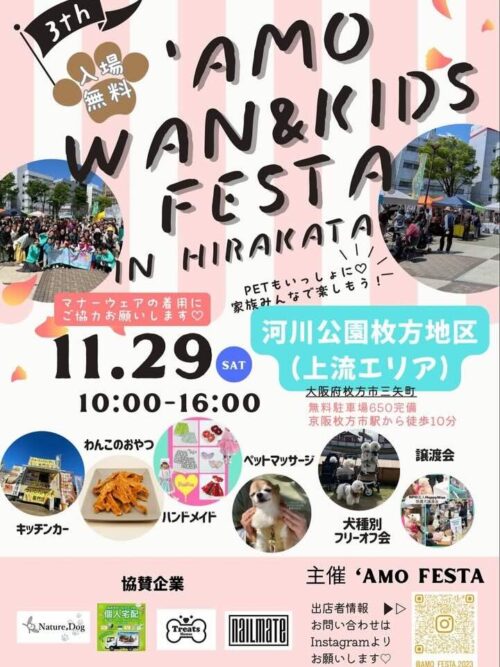 2025年11月29日(土)大阪府枚方市にある河川公園枚方地区(上流エリア)にて『’Amo WAN & KIDS FESTA 3rd』が開催されます。 *・゚想いを繋ぐ祭典!! .゚・*. 'Amo FES...