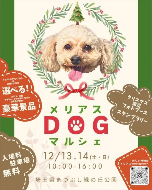 【埼玉県北葛飾郡】2025年12月13日(土)、14日(日)『メリアスドックマルシェ』がまつぶし緑の丘公園...