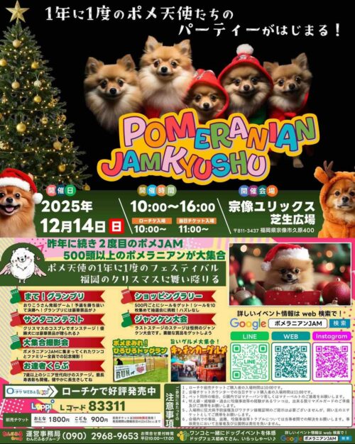 2025年12月14日(日)福岡県宗像市にある宗像ユリックス 芝生広場にて『ポメラニアン JAM九州2025』が開催されます。 ポメラニアン JAM九州2025 ポメファミリーの皆さん...