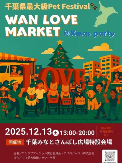 2025年12月13日(土)千葉県千葉市にある千葉みなとさんばし広場にて湾岸エリア最大級のドッグパーティー『第16回WAN LOVE MARKET Xmas party』が開催されます。 dz...