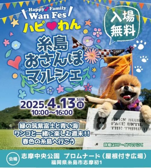 【福岡県糸島市】2025年4月13日(日)『ハピわん-糸島おさんぽマルシェ-』が志摩中央公園 プロムナード...