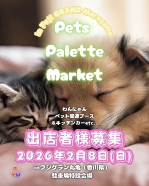 2026年2月8日(日)香川県丸亀市にあるフジグラン丸亀 西側駐車場にて『Pets Palette Market vol.6(ペッツ パレット マーケット)』が開催されます。 🐾イベン...