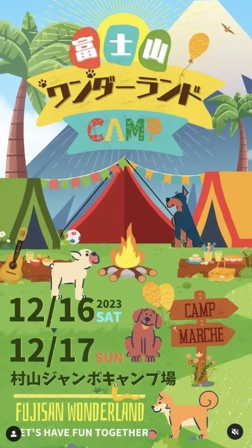 2023年12月16日(土)、17日(日)静岡県富士宮市にある村山ジャンボキャンプ場にて『富士山🐾ワン🐾ダーランド』が開催されます。