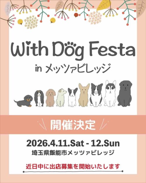 2026年4月11日(土)、12日(日)埼玉県飯能市にあるメッツァビレッジにて『With Dog Festa in メッツァビレッジ』が開催されます。 〖 メッツァビレッジ ドッグイベン...