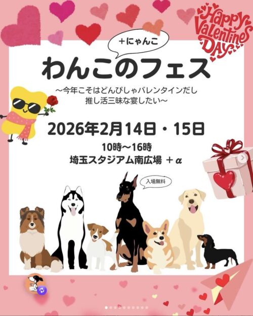 2026年2月14日(土)、15日(日)埼玉県さいたま市にある埼玉スタジアム 南広場+αにて『第6回わんこのフェス~今年こそはどんぴしゃバレンタインだし推し活三昧な宴し...