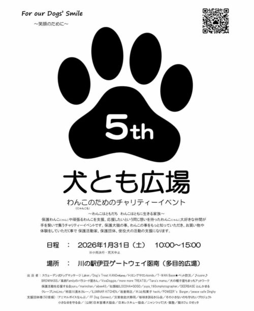 【静岡県田方郡】2026年1月31日 (土)わんこのためのチャリティーイベント『第5回 犬とも広場』が川の...