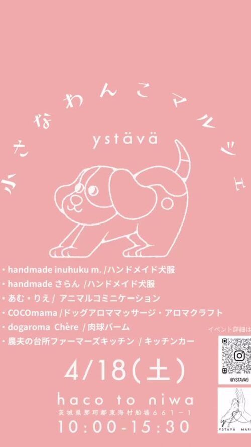 【茨城県那珂郡】2026年4月18日(土)『小さなわんこマルシェ』がhaco to niwaにて開催!