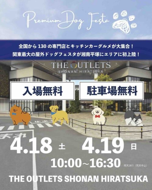 2026年4月18日(土)、19日(日)神奈川県平塚市にあるTHE OUTLETS HIRATSUKA にて関東最大級の屋外ドッグフェスタ『Premium Dog Fasta in 平塚(プレミアム ドッグ フ...